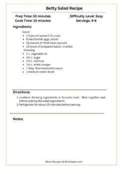Betty Salad Recipe Card